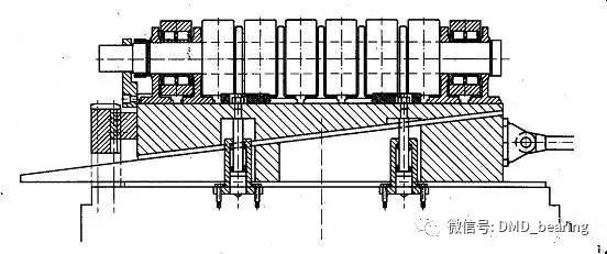 森德威克軋機(jī)的支撐輥徑向調(diào)整機(jī)構(gòu)在A、D輥上,通過(guò)直接移動(dòng)鞍座位置來(lái)使固定心軸產(chǎn)生彎曲變形,其輥形調(diào)整基本原理和森吉米爾軋機(jī)是一樣的。